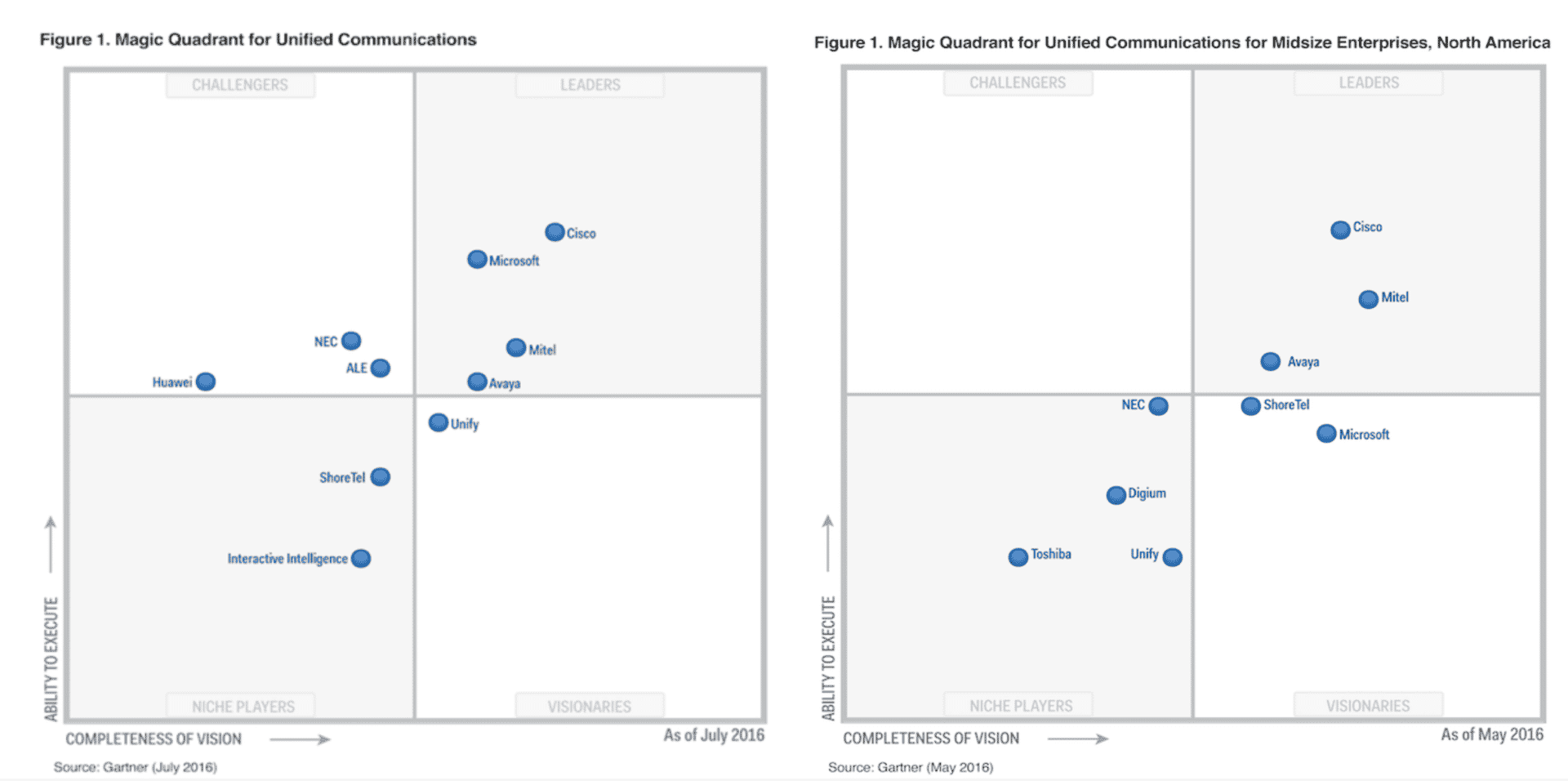Did you know Mitel is the only VoIP telephone system provider that is in all 5 of Gartner’s Magic Quadrants? Below is a chart showing Mitel vs. other VoIP providers. If you are not familiar with Gartner’s research, visit them here.
